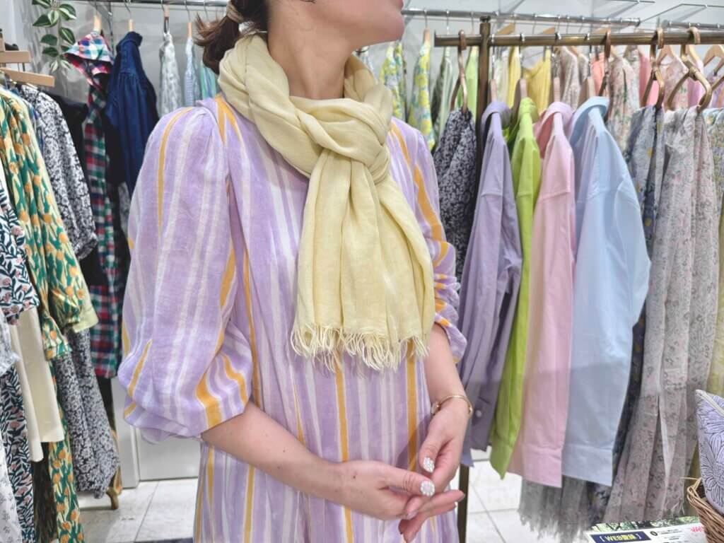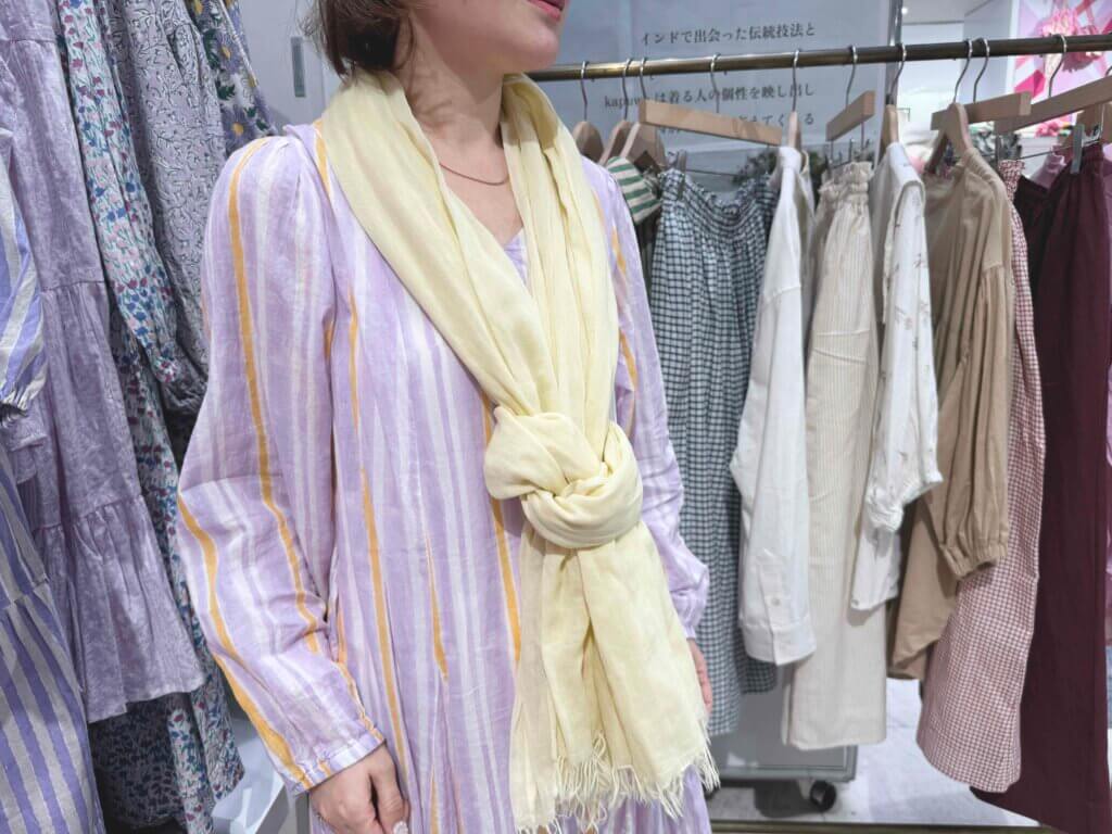 長さもあるのに軽くてやわらかいkapuwaのストールはのアレンジは無限。
